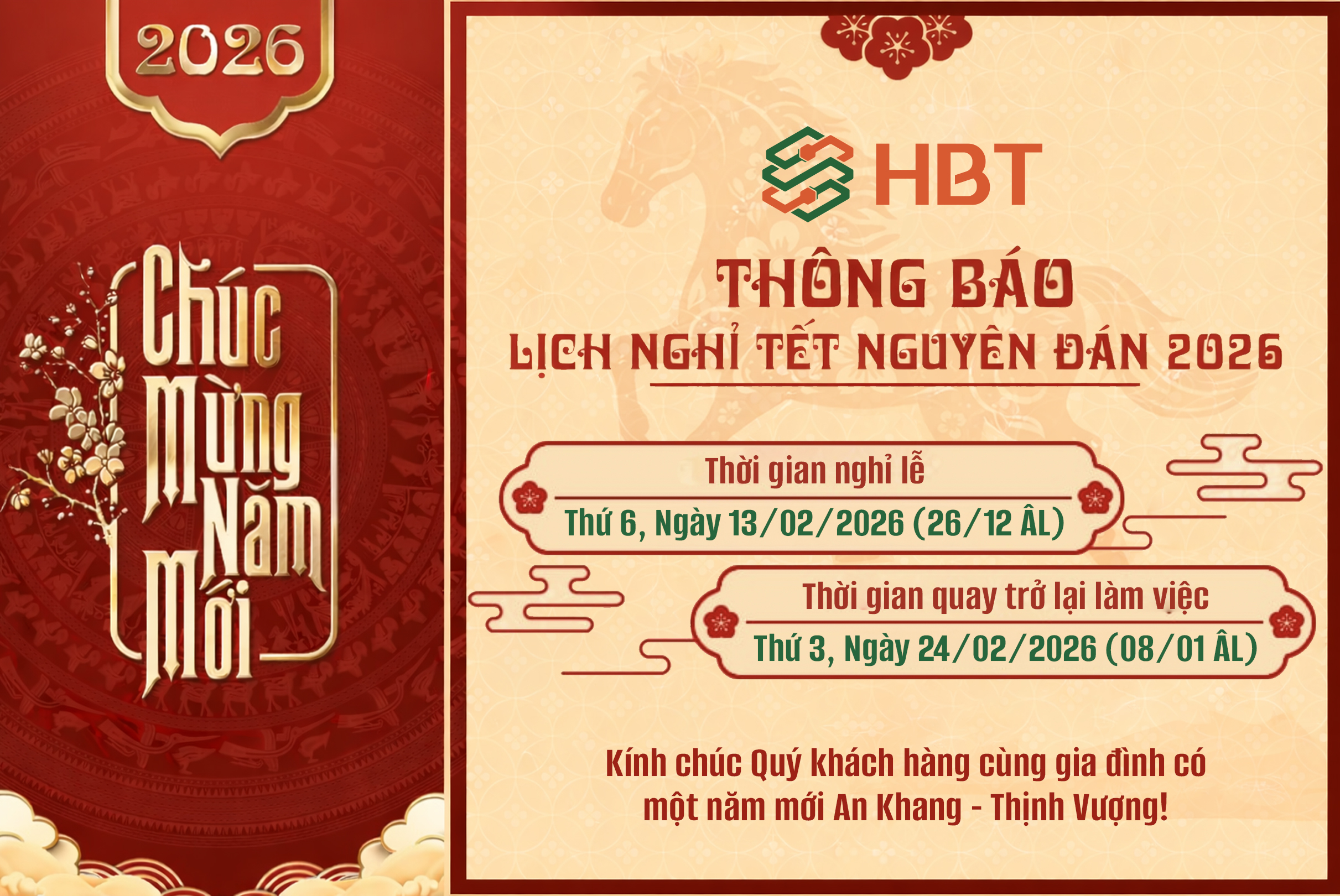 Để thuận tiện cho việc sắp xếp công việc và kế hoạch kinh doanh, HBT xin thông báo lịch nghỉ Tết Nguyên Đán 2026 như sau: